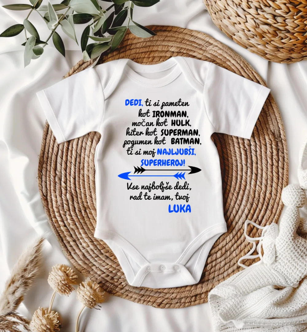 **SLIKA JE SIMBOLIČNA. Znamka majic in bodijev se lahko razlikuje od slike prikazane na spletu. Nepotiskane majice in bodiji so kupljeni pri različnih ponudnikih. Odpošljemo vam tisto znamko, ki je trenutno na voljo. Bodiji v št. 56 in 62 so na preklop v kolikor so na zalogi.