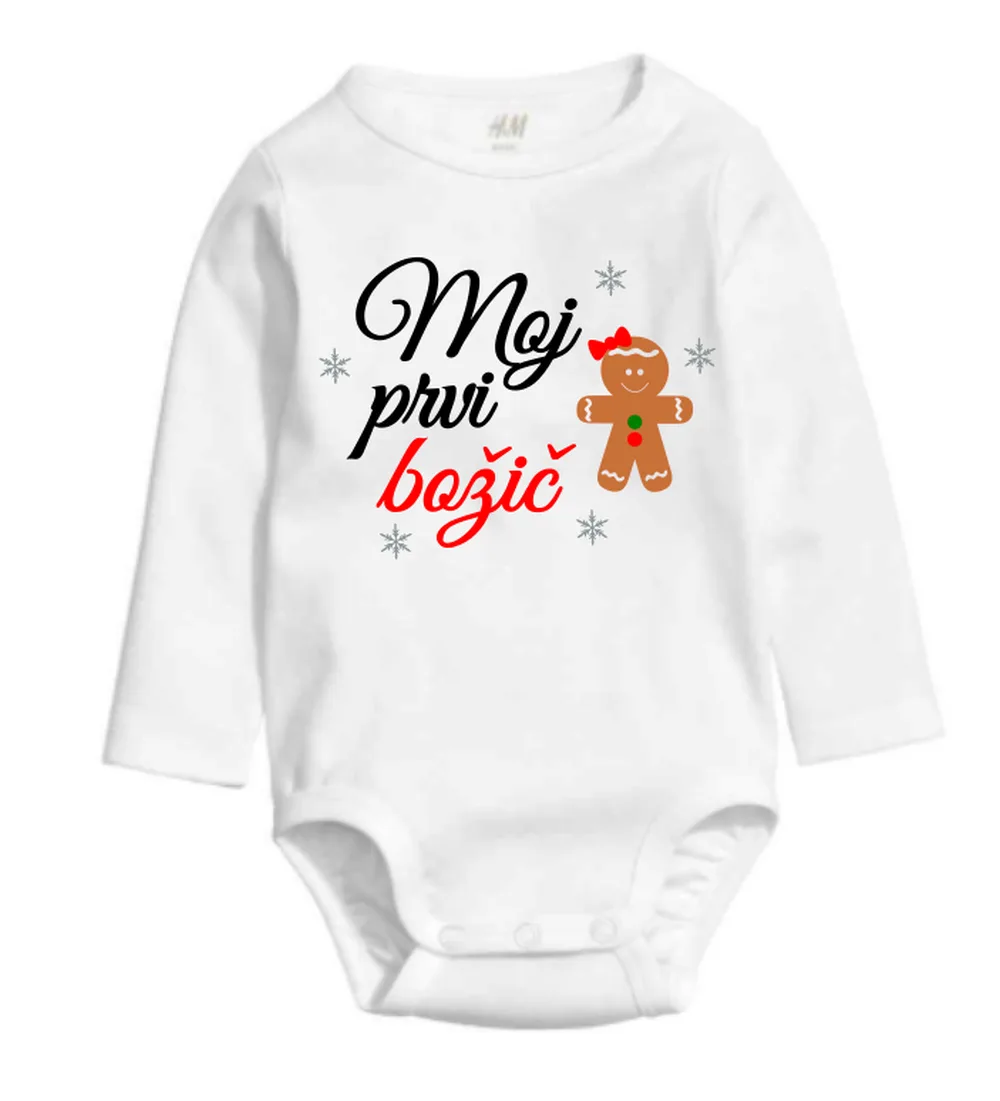 Božični bodi z napisom Moj prvi božič z motivom piškotka.
