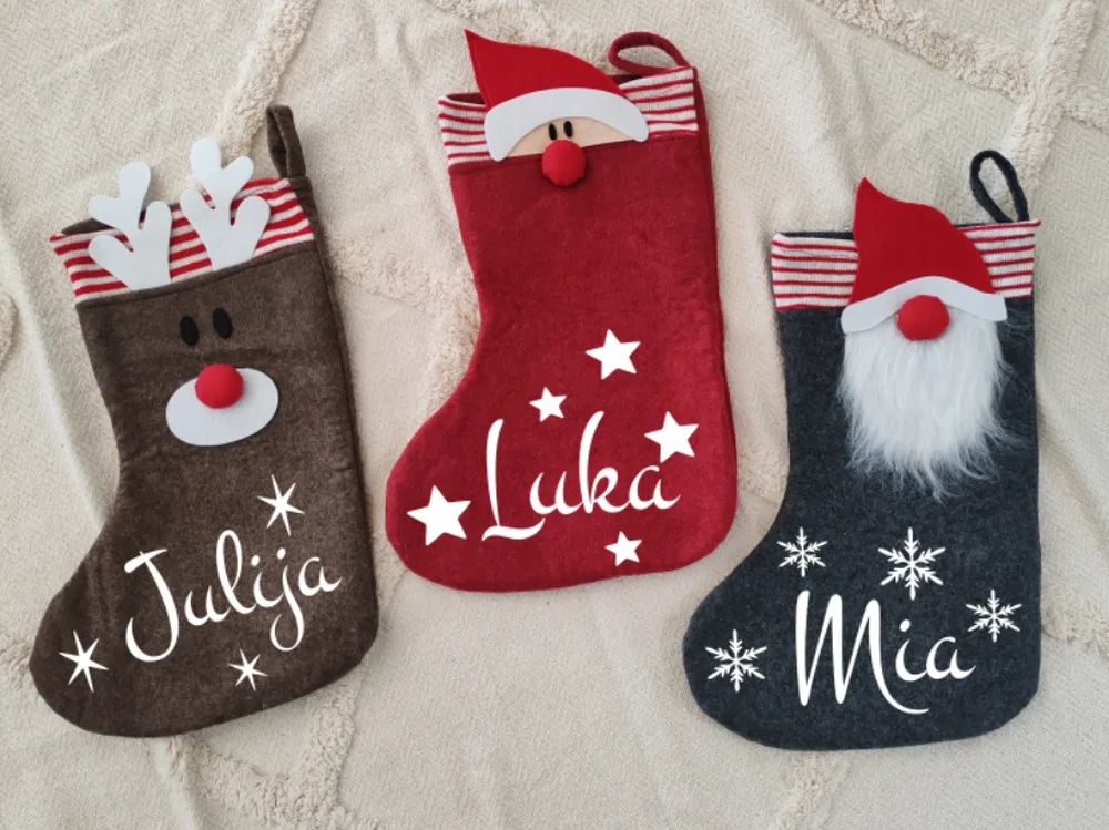 Podarite praznično veselje z našimi prikupnimi božičnimi nogavicami z imenom! Mehke, tople in polne čarobnosti. Popolno darilo za otroke in družino, ki prinaša nasmeh pod smreko.