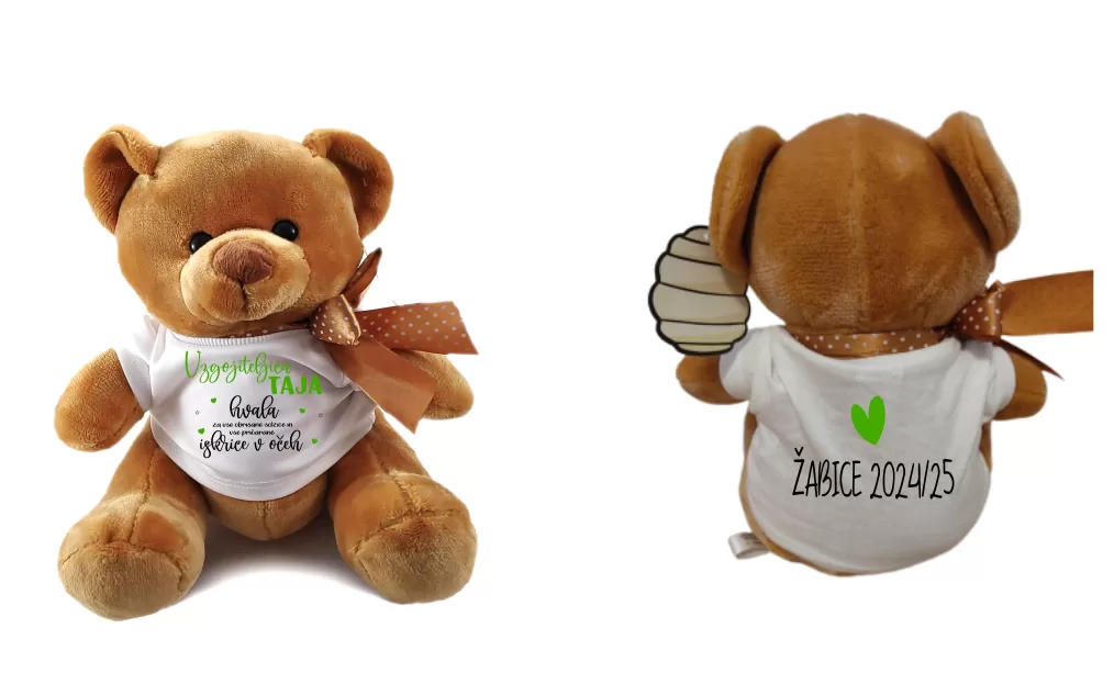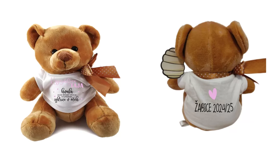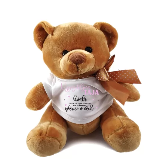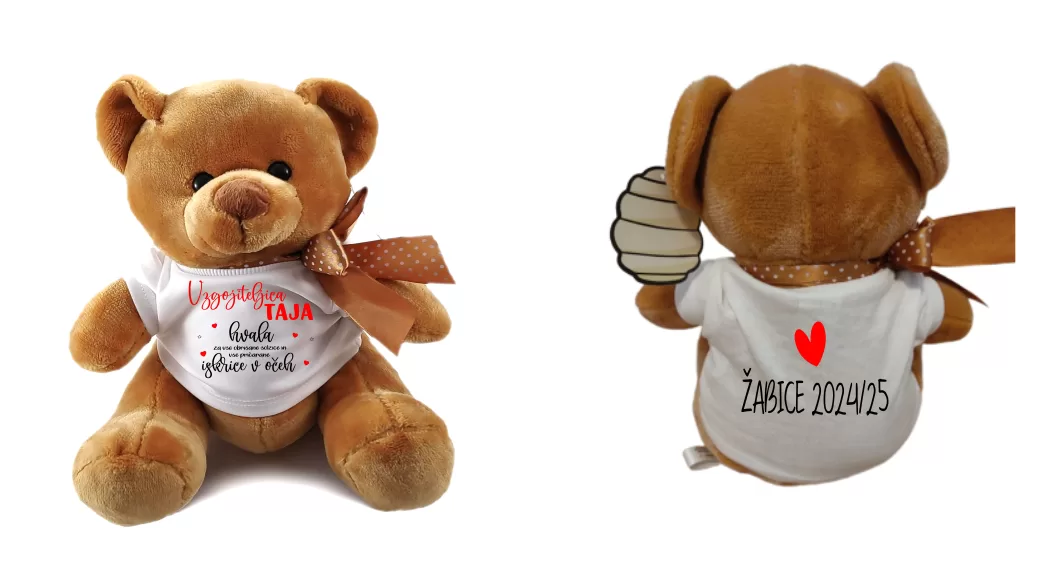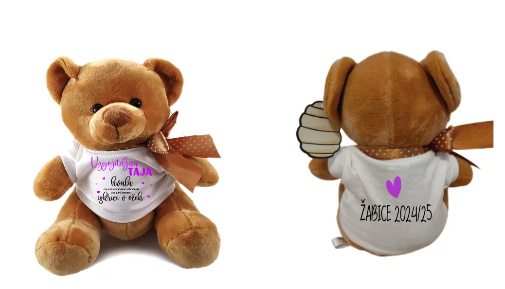 Podarite nekaj srčnega in osebnega! Ta ljubek plišasti medvedek nosi mehko majčko z napisom, kar ga naredi popolno darilo za posebno vzgojiteljico, ki je pustila topel pečat v otroških srčkih.