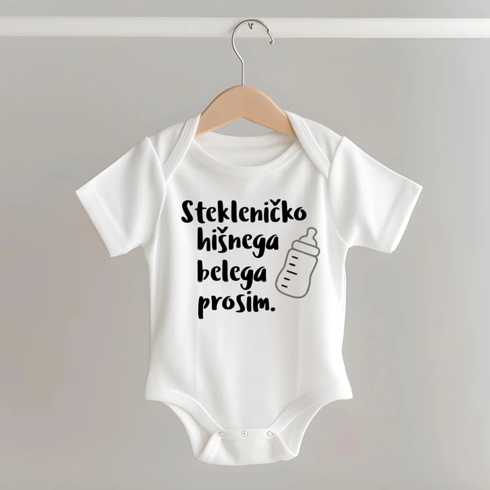 **SLIKA JE SIMBOLIČNA. Znamka majic in bodijev se lahko razlikuje od slike prikazane na spletu. Nepotiskane majice in bodiji so kupljeni pri različnih ponudnikih. Odpošljemo vam tisto znamko, ki je trenutno na voljo. Bodiji v št. 56 in 62 so na preklop v kolikor so na zalogi.