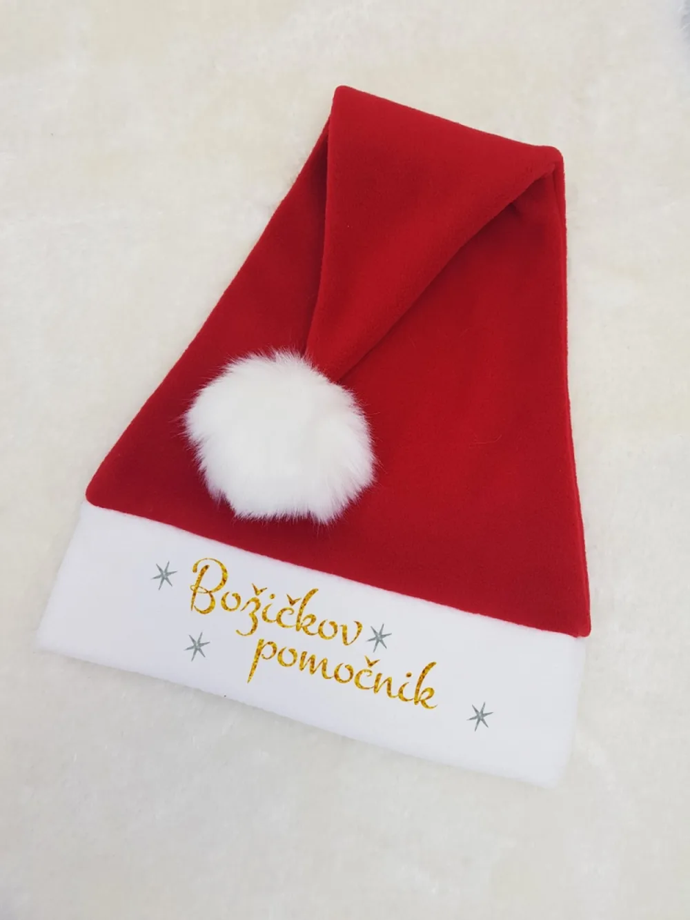 Pričarajte si božič z božično kapo iz mehkega flisa s kosmatim cofom ter personaliziranim napisom. Božične fotografije bodo tako še bolj unikatne in čarobne.